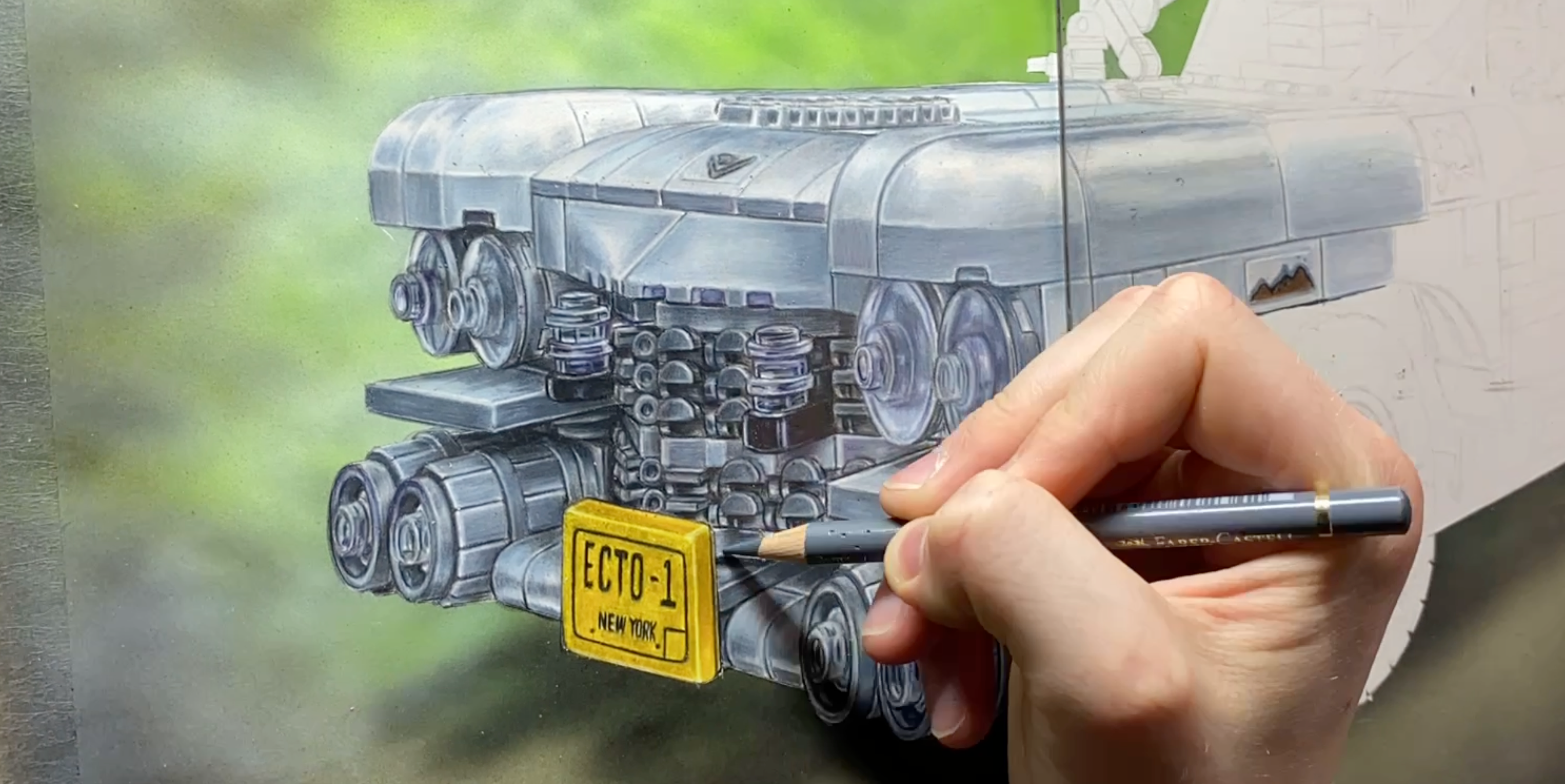 These are the finest coloured pencils money can buy and I use them to create this drawing of the LEGO Ecto-1