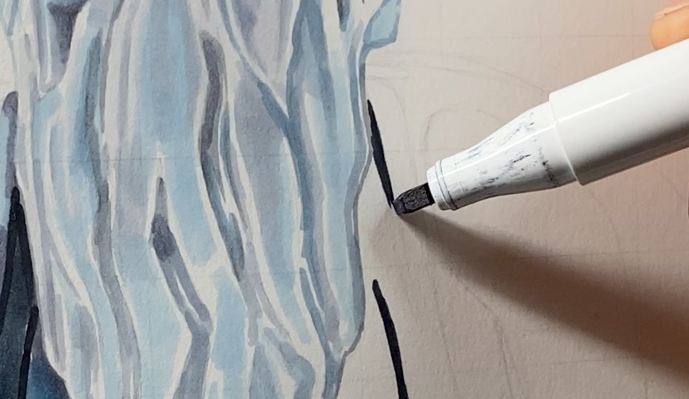 The sketching, marker work and coloured pencil work combined took me just under 30 hours