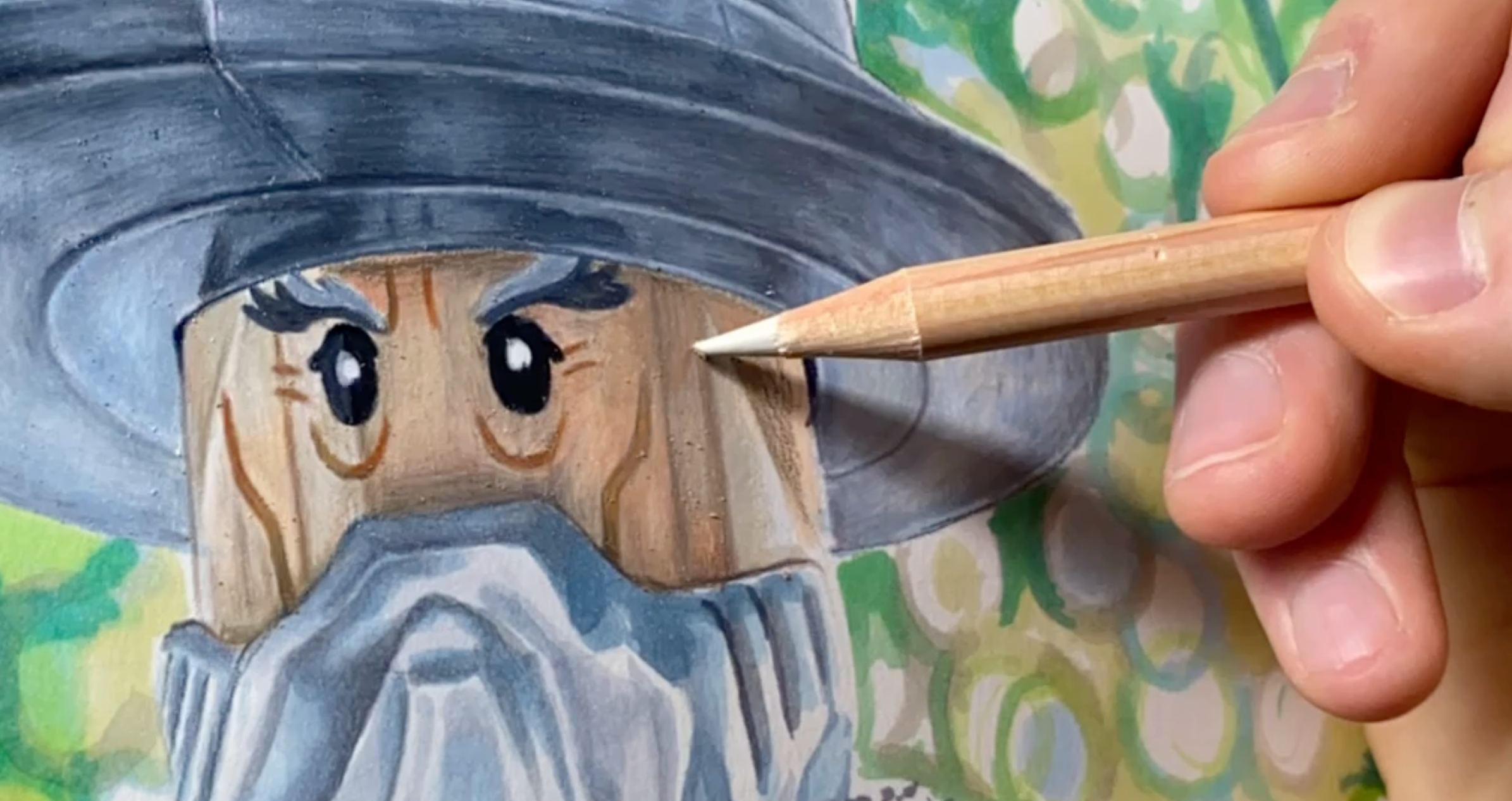 These are the finest coloured pencils money can buy and I used them to create this drawing of the LEGO Gandalf Minifigure