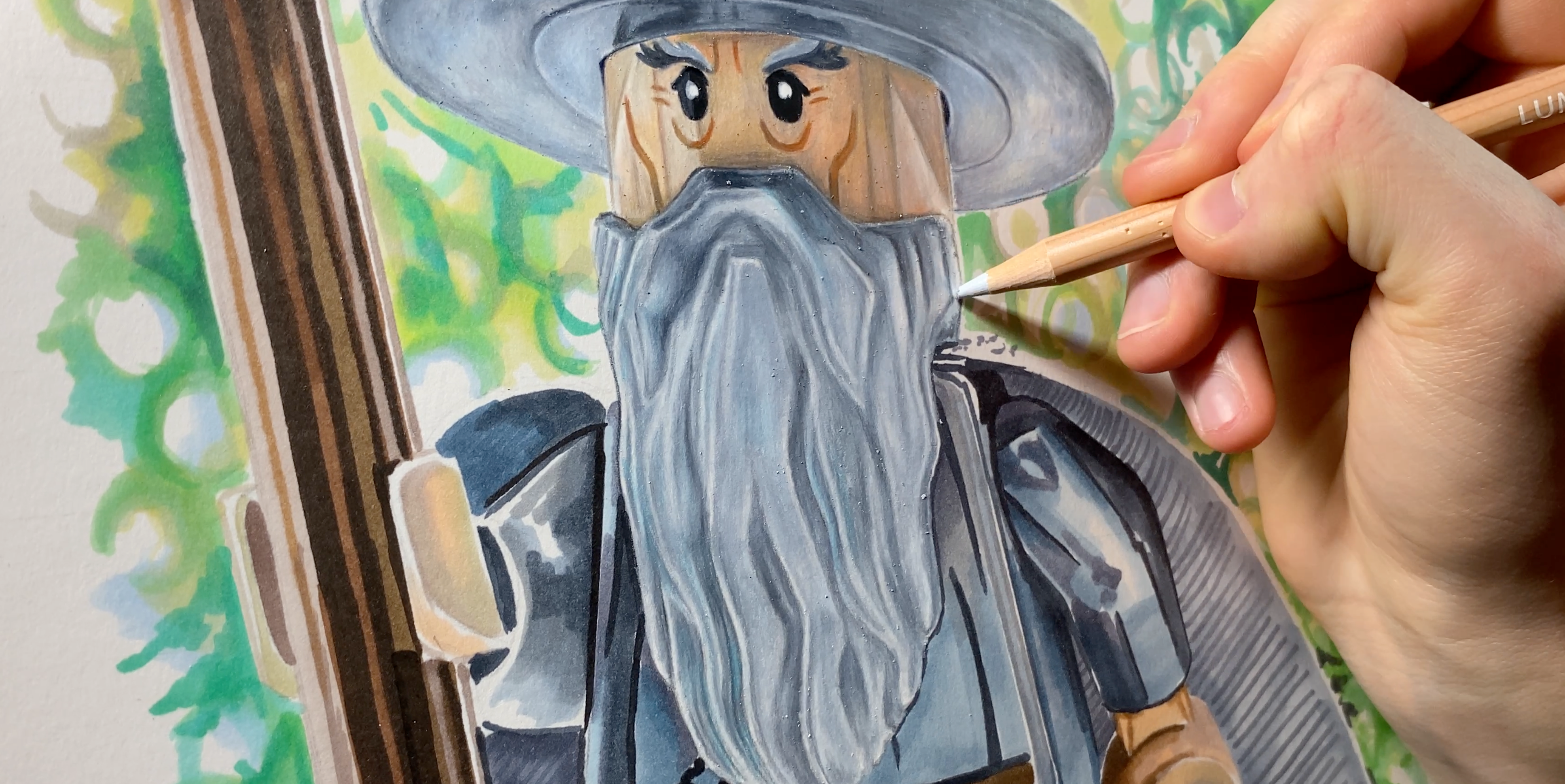 These are the finest coloured pencils money can buy and Tom used them to create this drawing of the LEGO Gandalf Minifigure