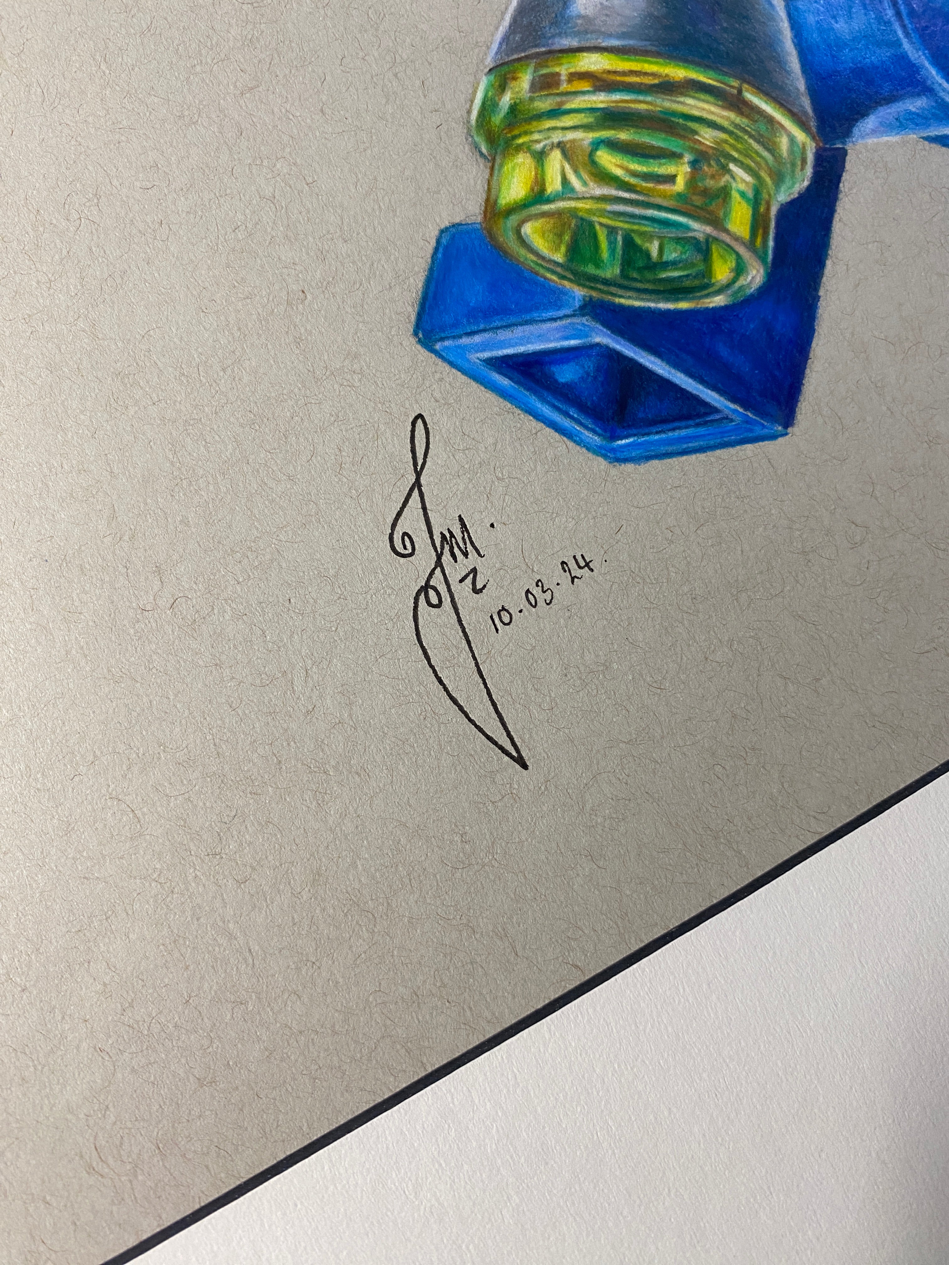 The drawing is signed and dated with the day it was finished (10th March 2024)
