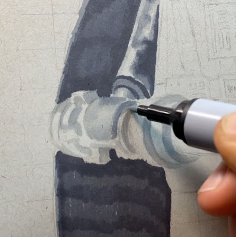 15 hours went into meticulously adding in every groove, reflection and printed detail to bridge the gap between drawing a photograph.