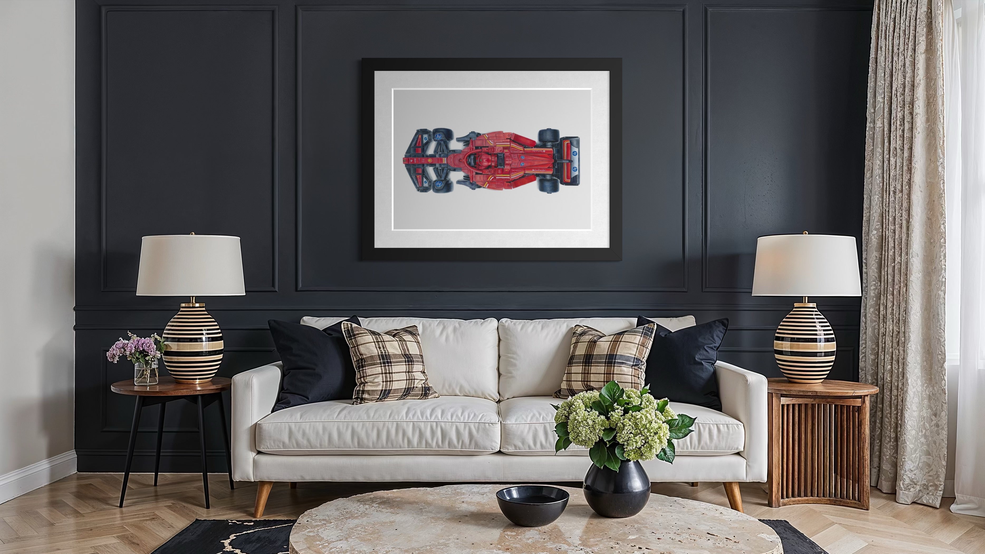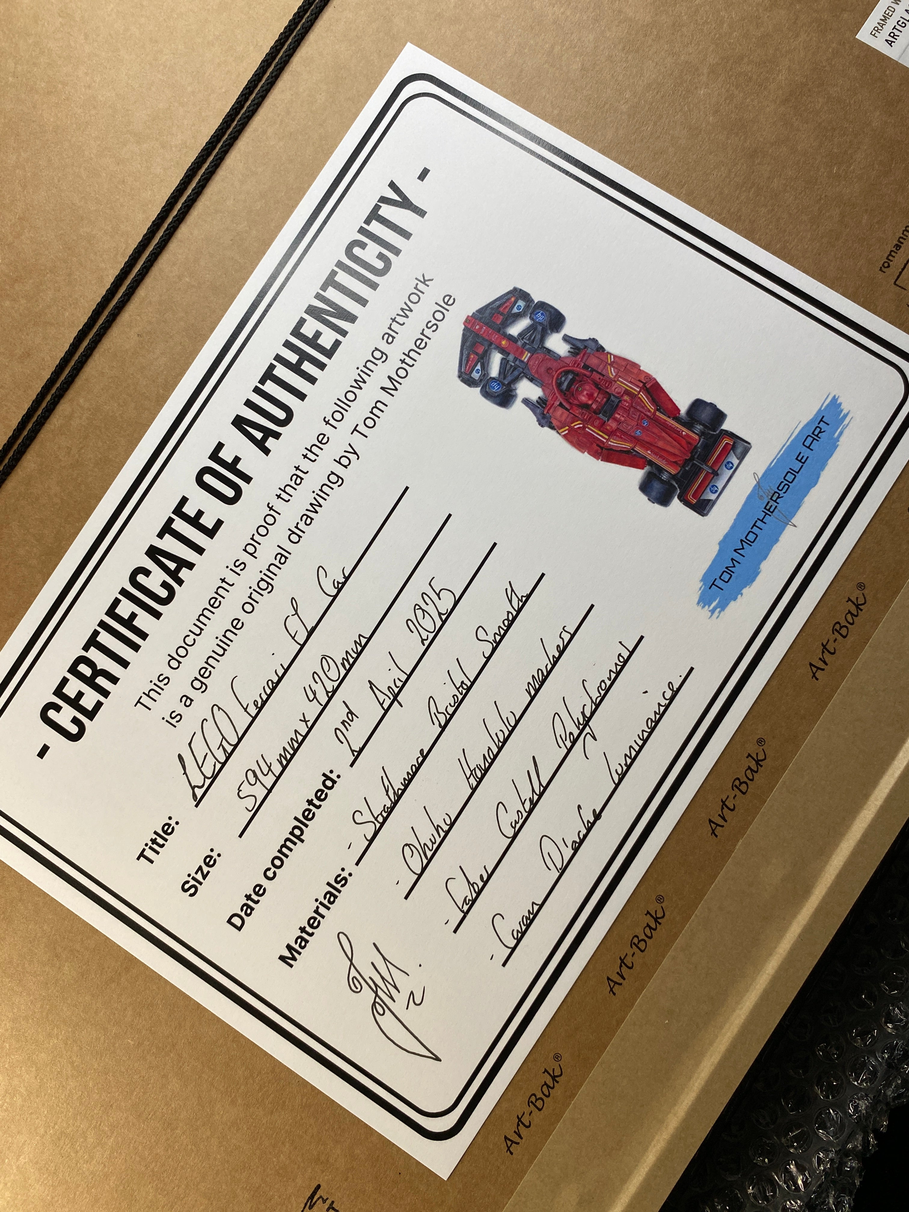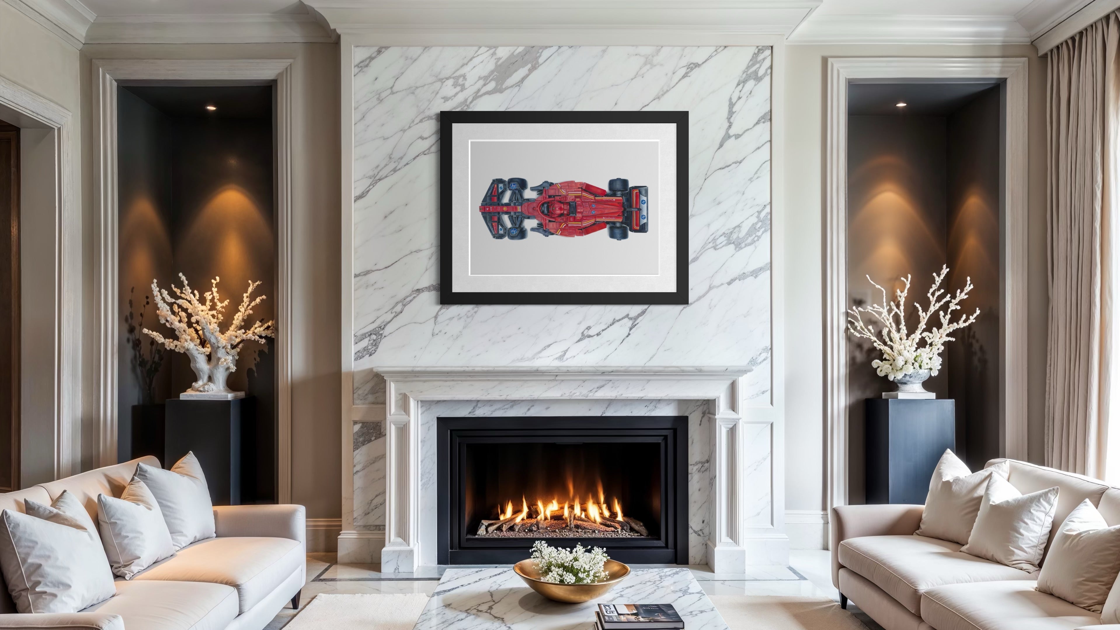If you're looking for a unique display piece for your space that combines your love for LEGO and the Ferrari F1 team, this artwork is for you.