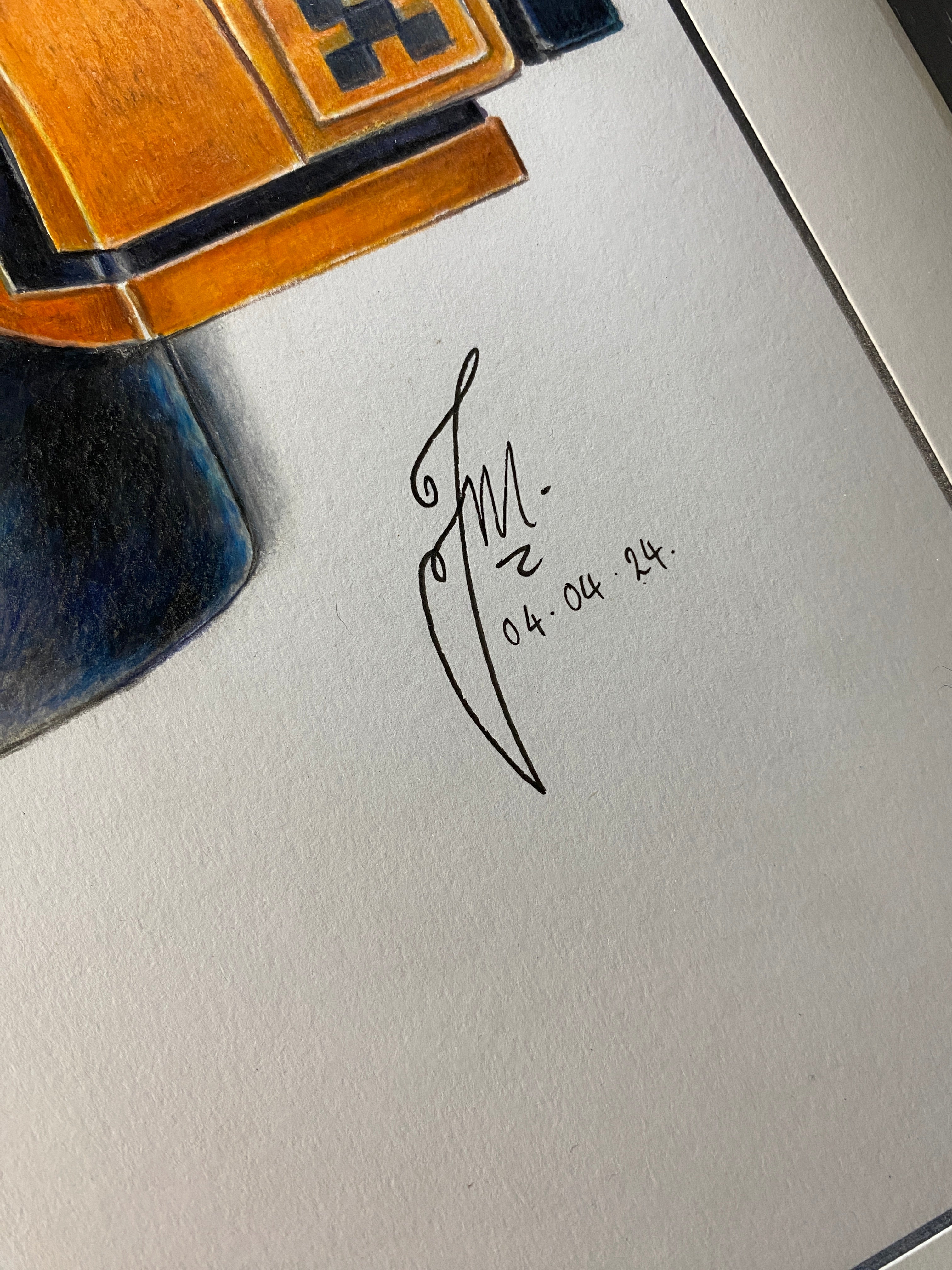 The drawing is signed in the bottom right hand corner alongside the day it was finished (4th April 2024)