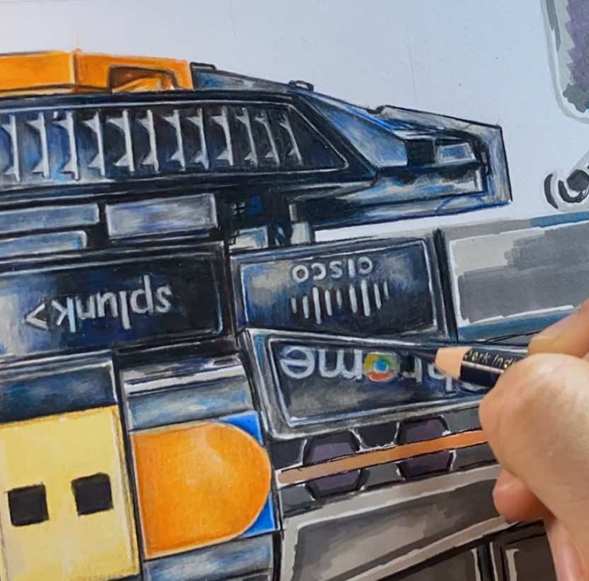 Every groove. Every reflection. Every sticker. All carefully drawn in to make you think "wait...is that a pencil drawing?!?"